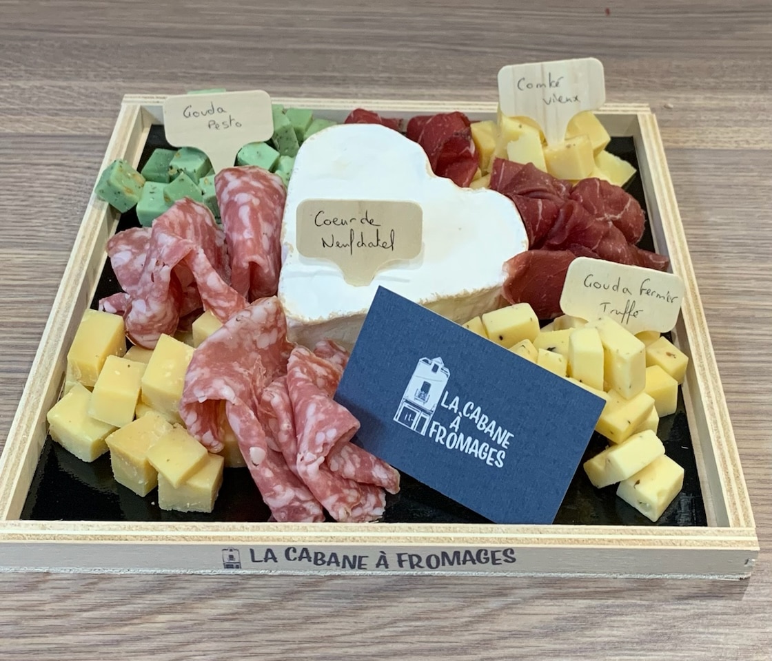 Composé par votre fromager. (Comté vieux, gouda fermier pesto, coeur de neufchâtel, gouda fermier truffé)